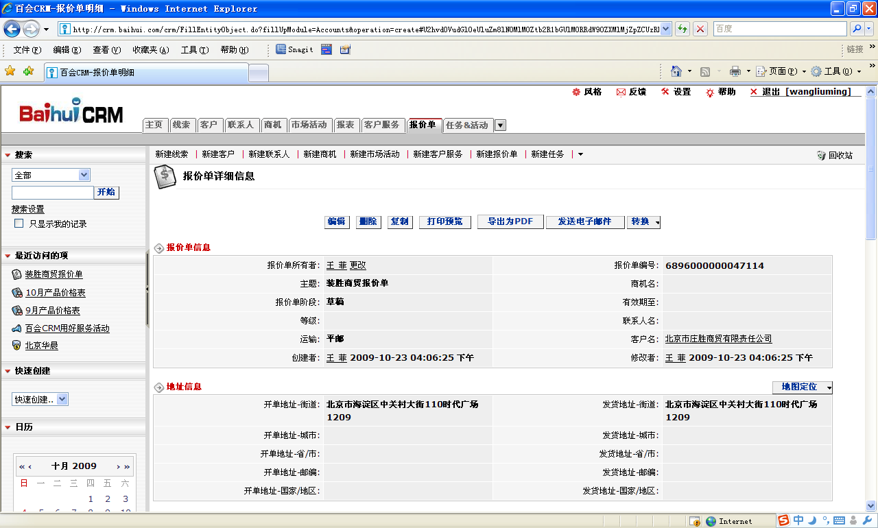 > 可通过报价单列表查看、跟踪现报价单的阶段