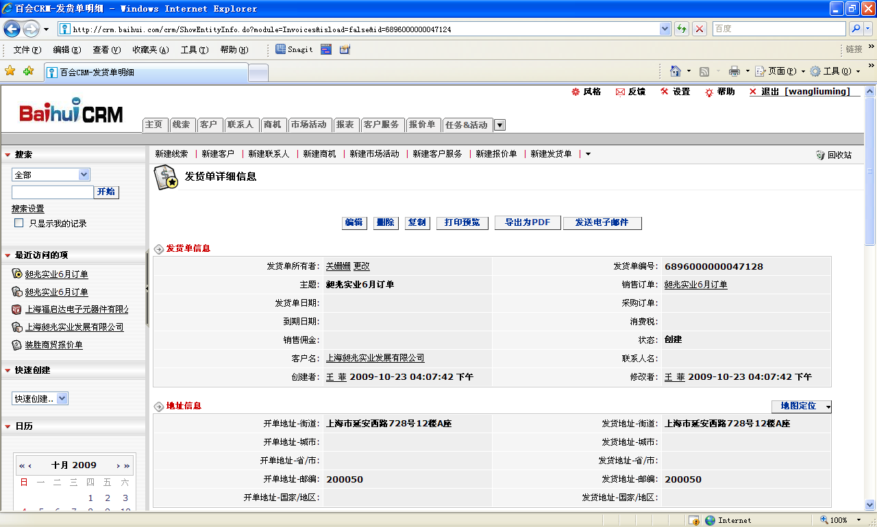 > 通过自身的电子邮件服务功能将发货单发送给客户