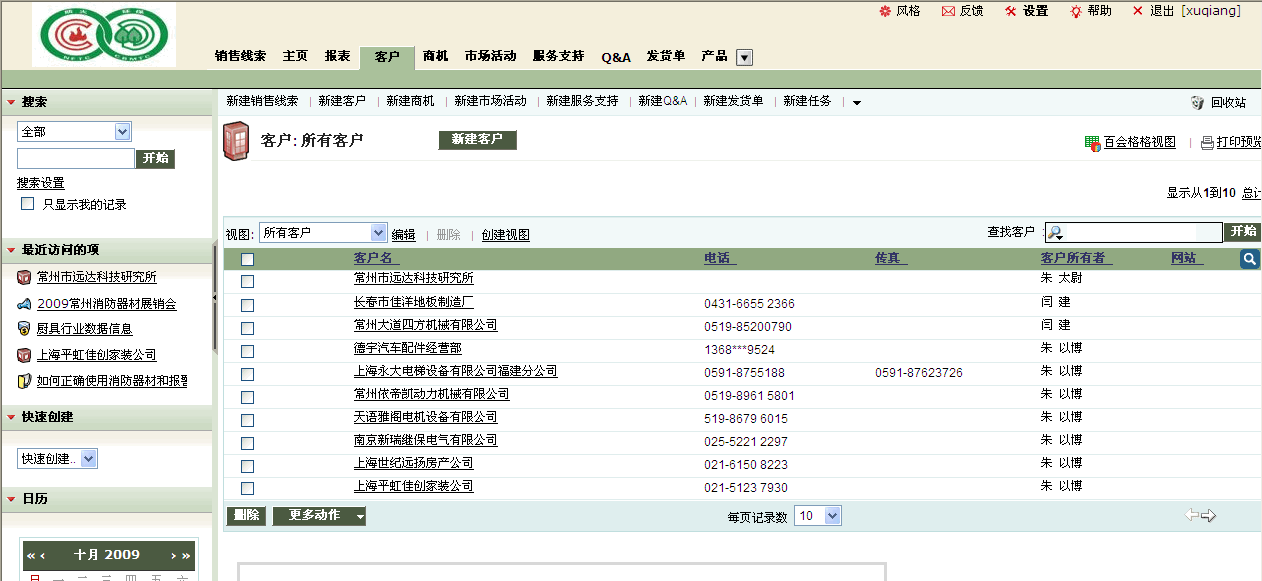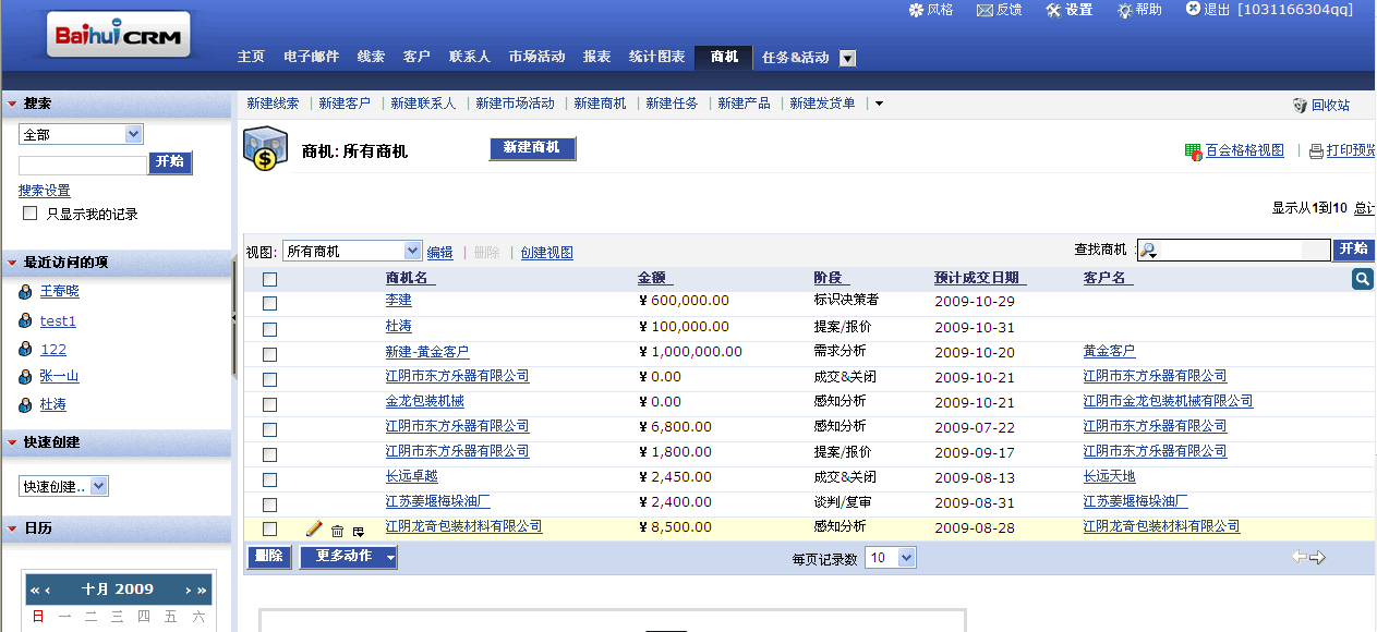 > 可跟踪所有客户以及相关的联系人、商业机会、服务支持以及其他信息