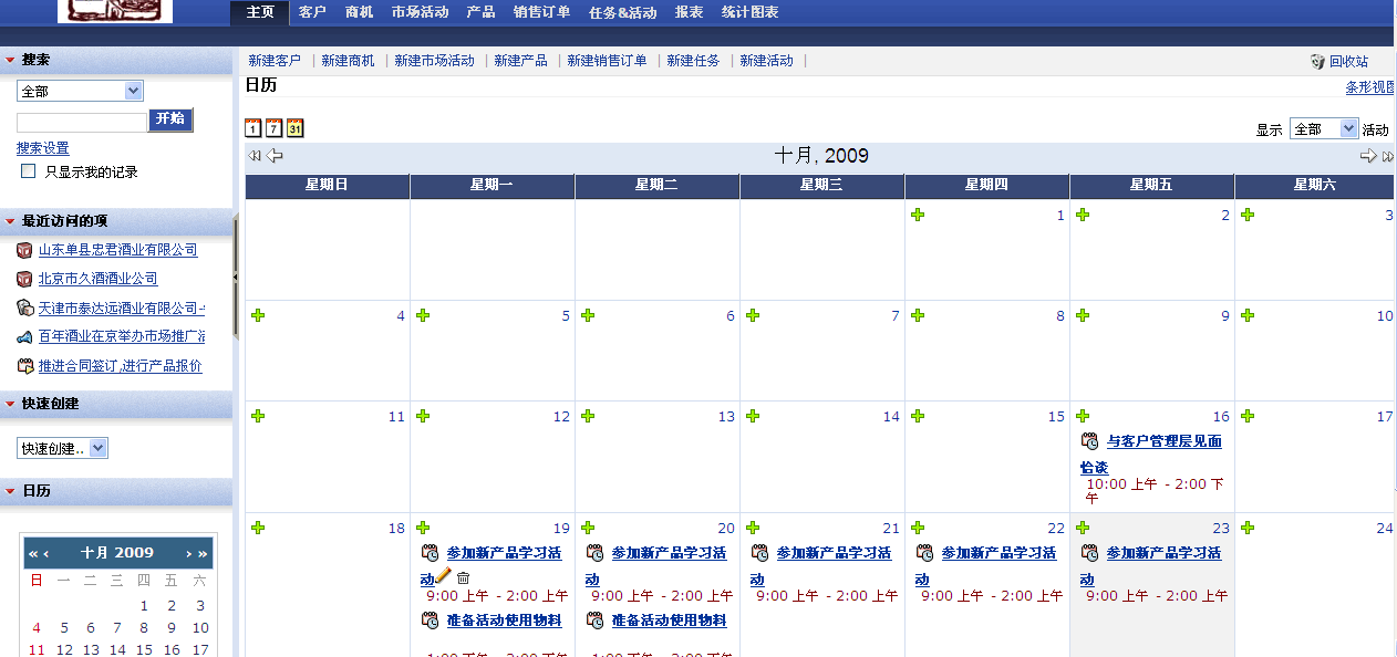 > 在日程中方便快捷的记录所有客户的会议及电话预约等活动时间安排